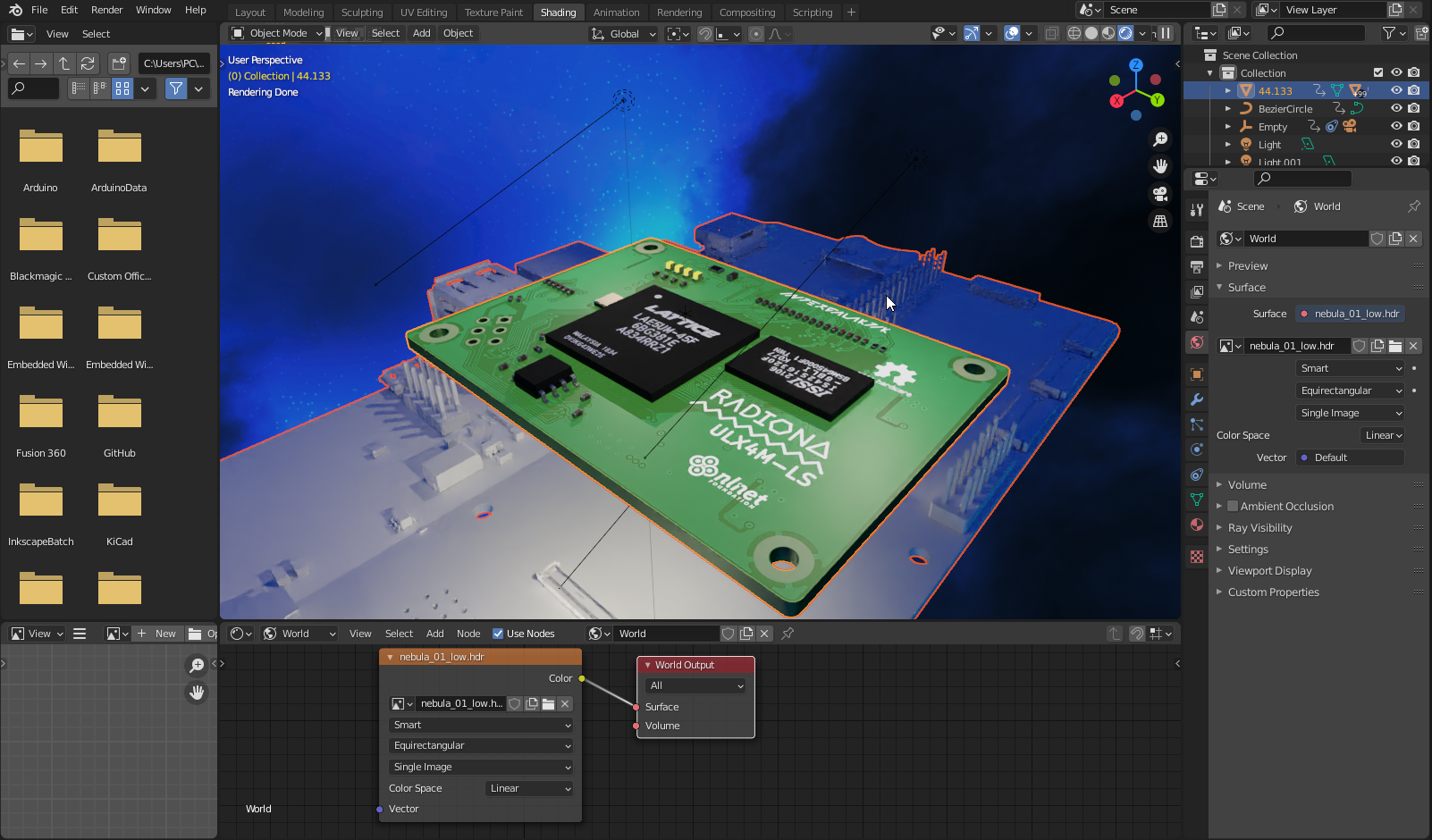 ULX4M will be comaptible with many IO boards, and for example in this sample we will use Raspberry Pi Compute Module 4 IO Board https://github.com/v3l0c1r4pt0r/CM4IO-KiCAD with already described process export STEP file from KiCad and import in Blender.