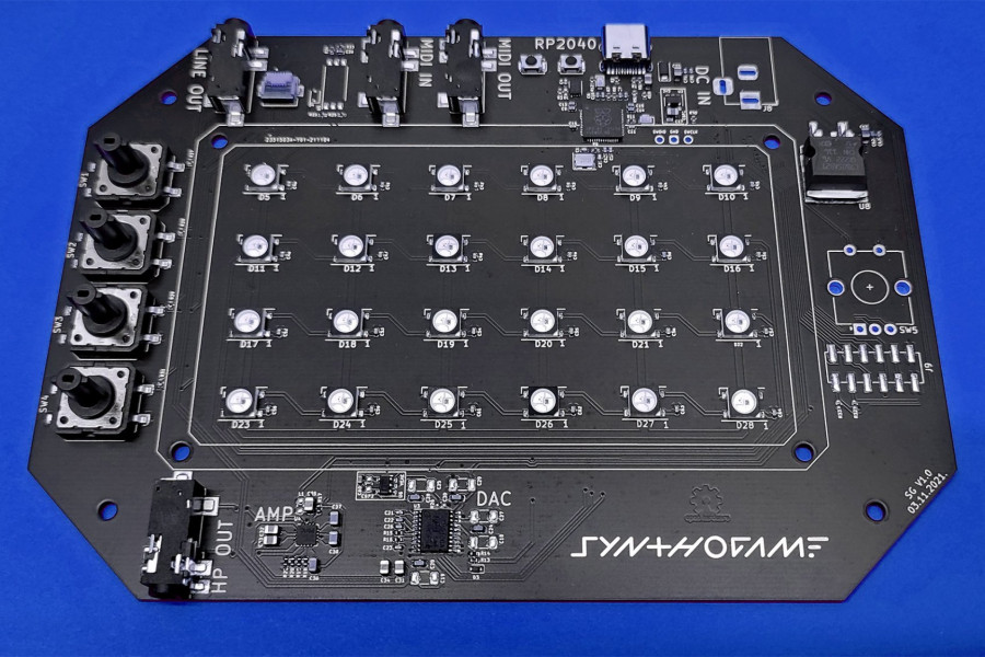 Synthogame firmware runs on Raspberry Pi RP2040 microcontroller.